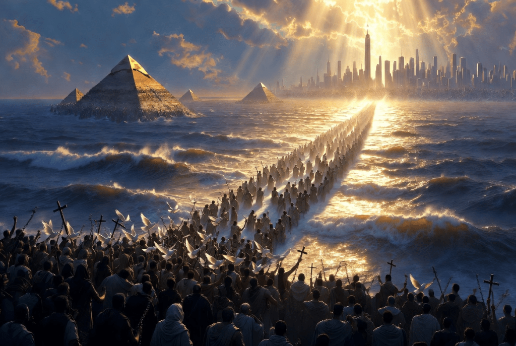 Like Moses and the Hebrews marching through the Red Sea, We must push on to reach the end of our journey. Exodus tells the story of the Hebrews exiting out, Egypt is left for forty years of wandering doubt.