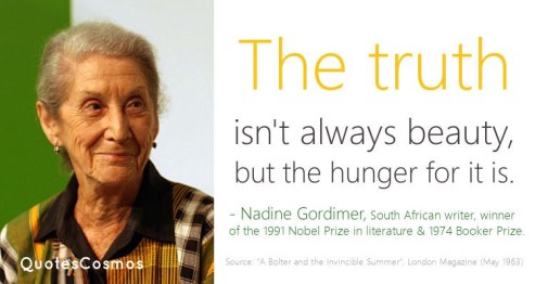 “The truth isn’t always beauty, but the hunger for it is.” – Nadine Gordimer, novelist, Nobel laureate (20 Nov 1923-2014)