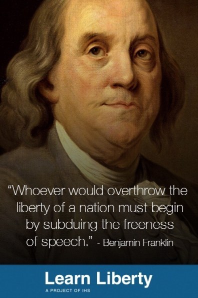 “Whoever would overthrow the liberty of a nation must begin by subduing the freeness of speech.” – Benjamin Franklin