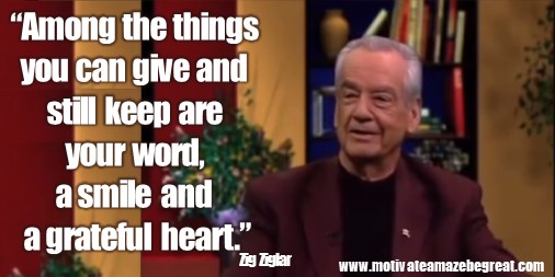 “Among the things you can give and still keep are your word, a smile, and a grateful heart.” – Zig Ziglar