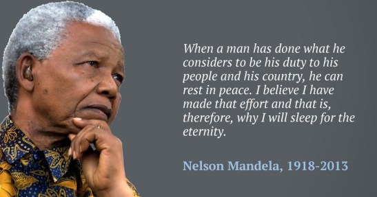 “Death is something inevitable. When a man has done what he considers to be his duty to his people and his country, he can rest in peace. I believe I have made that effort and that is, therefore, why I will sleep for the eternity.” – Nelson Mandela