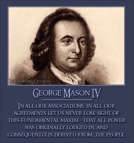 “That all power is vested in, and consequently derived from, the people; that magistrates are their trustees and servants, and at all times amendable to them.” – George Mason, in the Virigina Bill of Rights