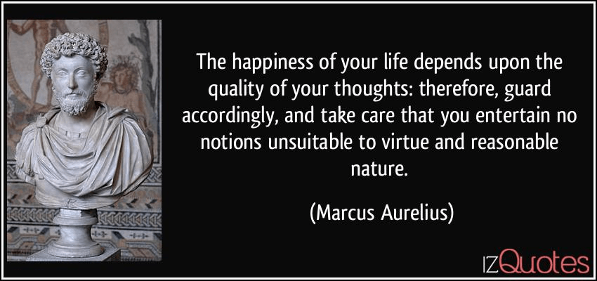 “The happiness of your life depends upon the quality of your thoughts: therefore, guard accordingly, and take care that you entertain no notions unsuitable to virtue and reasonable nature.” – Marcus Aurelius (121-180 AD)