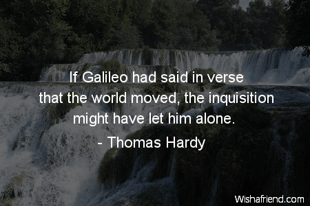 “If Galileo had said in verse that the world moved, the Inquisition might have let him alone.” -Thomas Hardy, novelist and poet (2 Jun 1840-1928)
