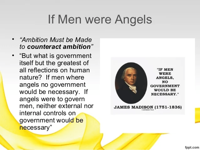 “Ambition must be made to counteract ambition. The interest of the man must be connected with the constitutional rights of the place. It may be a reflection on human nature that such devices should be necessary to control the abuses of government. What is government itself but the greatest of all reflections on human nature?” – James Madison (1788)