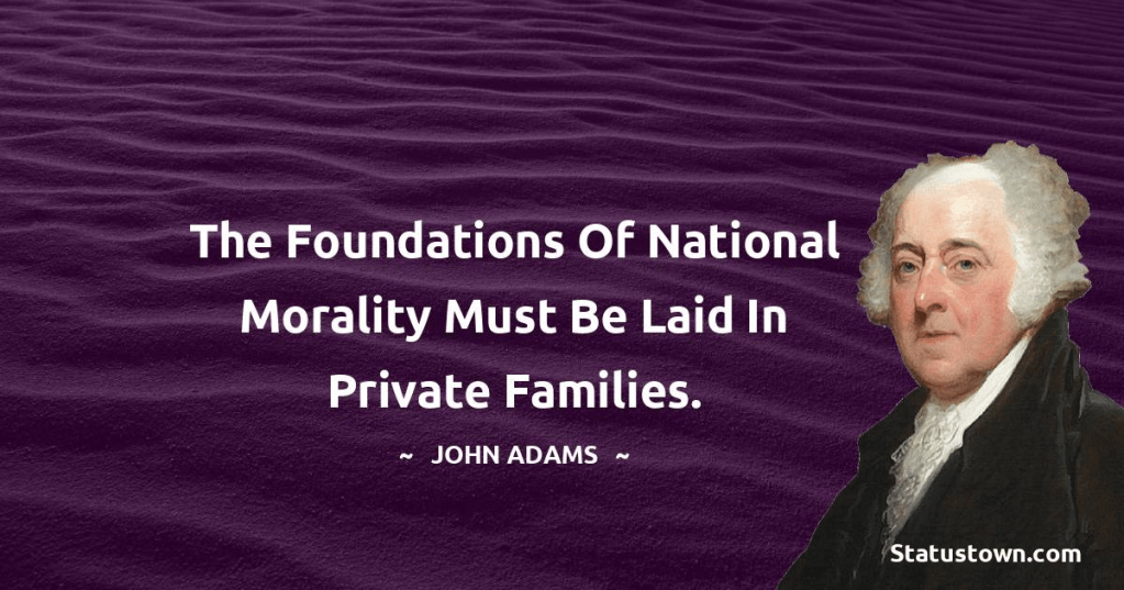 “The foundation of national morality must be laid in private families. … In vain are schools, academies, and universities instituted, if loose principles and licentious habits are impressed upon children in their earliest years.” – John Adams (1778)