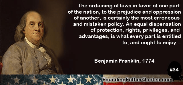 “The ordaining of laws in favor of one part of the nation, to the prejudice and oppression of another, is certainly the most erroneous and mistaken policy.” – Benjamin Franklin (1774)