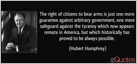 “Certainly one of the chief guarantees of freedom under any government, no matter how popular and respected, is the right of citizens to keep and bear arms. This is not to say that firearms should not be very carefully used and that definite safety rules of precaution should not be taught and enforced. But the right of citizens to bear arms is just one more guarantee against arbitrary government, and one more safeguard against tyranny which now appears remote in America, but which historically has proved to be always possible.” – Hubert H. Humphrey (1911-1978)