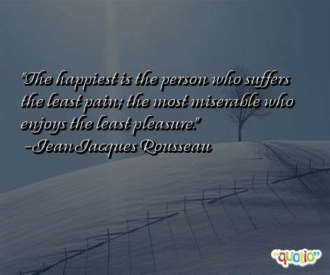 “The happiest is the person who suffers the least pain; the most miserable who enjoys the least pleasure.” -Jean-Jacques Rousseau, philosopher and author (28 Jun 1712-1778)