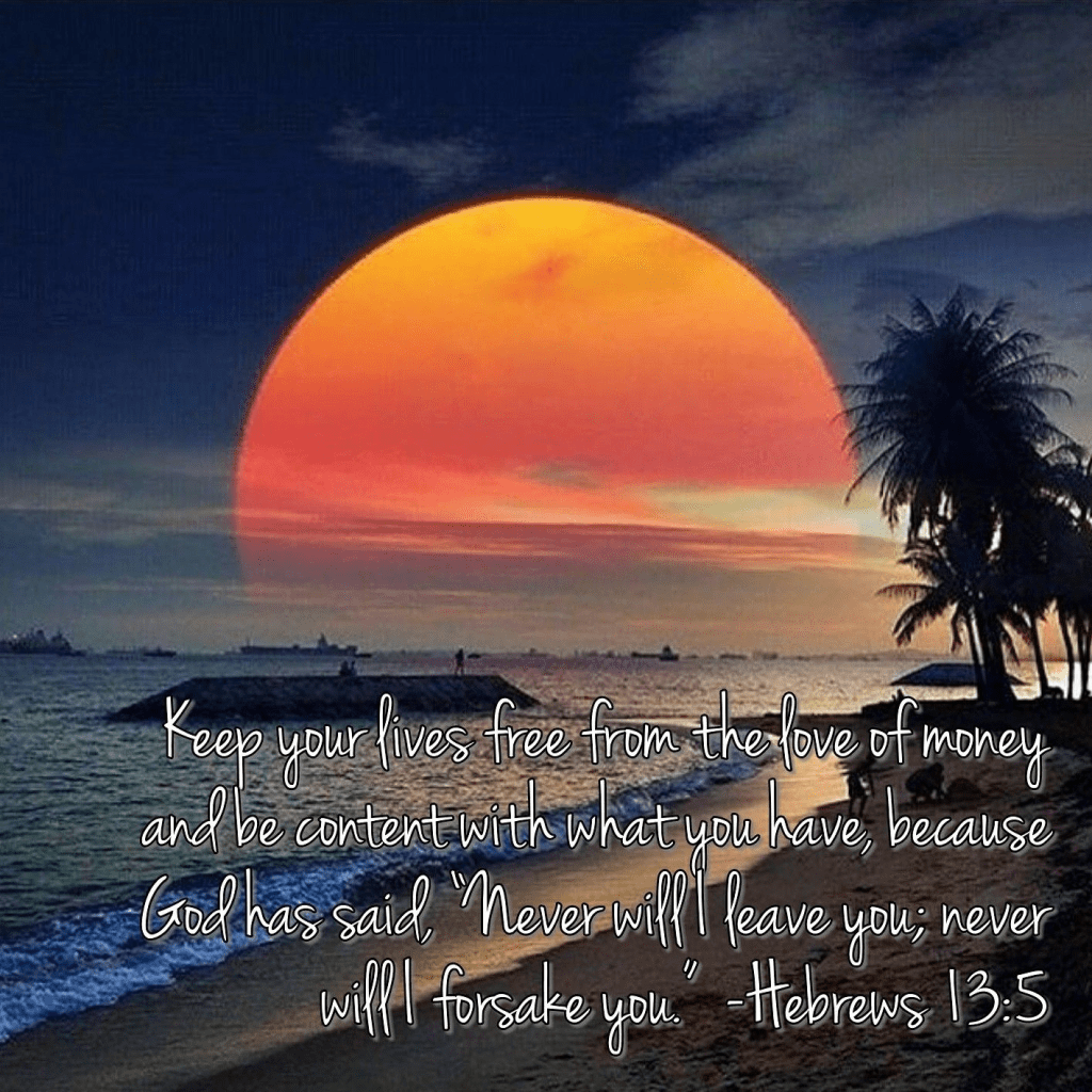 “Keep your lives free from the love of money and be content with what you have, because God has said, “Never will I leave you; never will I forsake you.” – Hebrews 13:5 (New International Version)