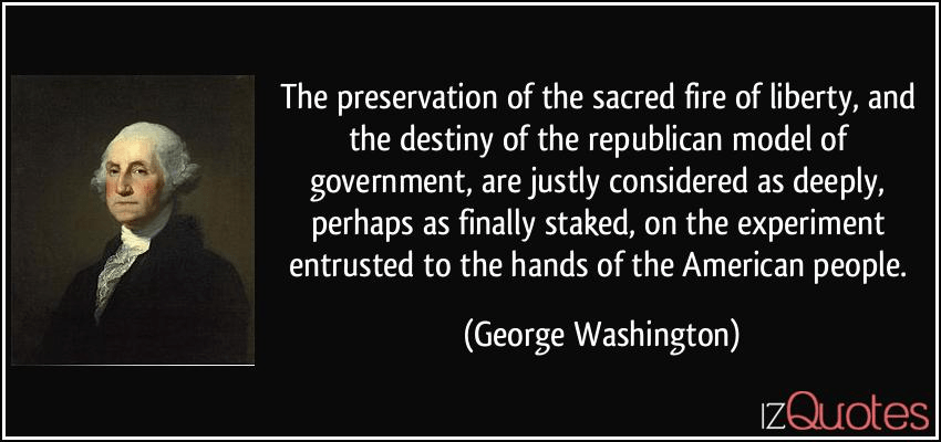 “The preservation of the sacred fire of liberty, and the destiny of the republican model of government, are justly considered deeply, perhaps as finally, staked on the experiment entrusted to the hands of the American people.” – George Washington