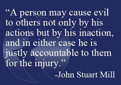 “A person may cause evil to others not only by his actions but by his inaction, and in either case he is justly accountable to them for the injury.” -John Stuart Mill, philosopher and economist (1806-1873)