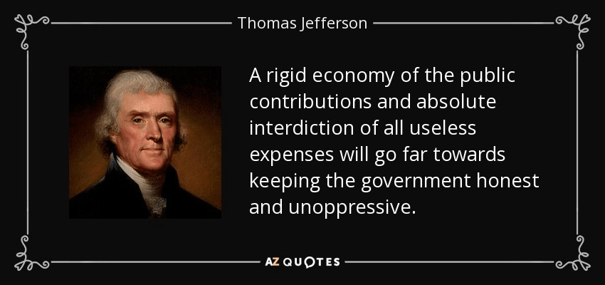 “[A] rigid economy of the public contributions and absolute interdiction of all useless expenses will go far towards keeping the government honest and unoppressive.” – Thomas Jefferson (1823)