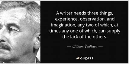 “A writer needs three things, experience, observation, and imagination, any two of which, at times any one of which, can supply the lack of the others.” -William Faulkner, novelist (25 Sep 1897-1962)