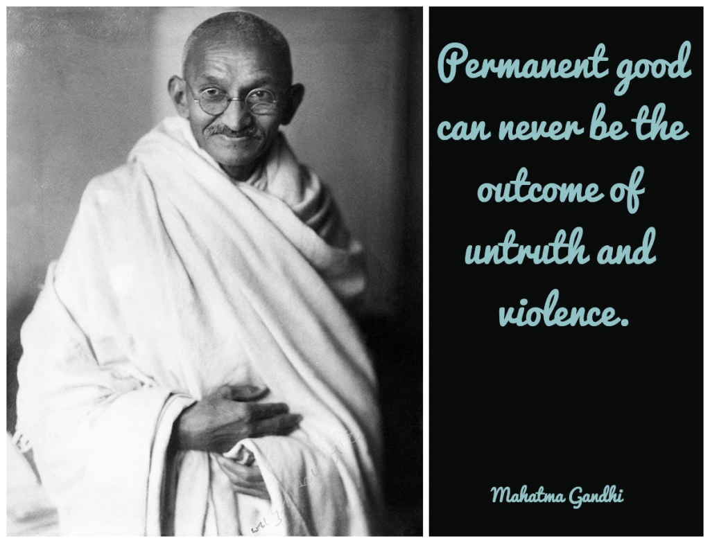 “Permanent good can never be the outcome of untruth and violence.” – Mohandas K. Gandhi (1869-1948)