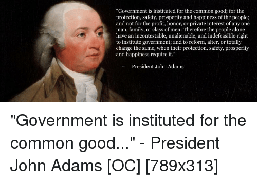 “Government is instituted for the common good; for the protection, safety, prosperity, and happiness of the people; and not for profit, honor, or private interest of any one man, family, or class of men…” – John Adams (1776)