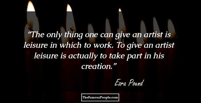 “The only thing one can give an artist is leisure in which to work. To give an artist leisure is actually to take part in his creation.” – Ezra Pound, poet (30 Oct 1885-1972)