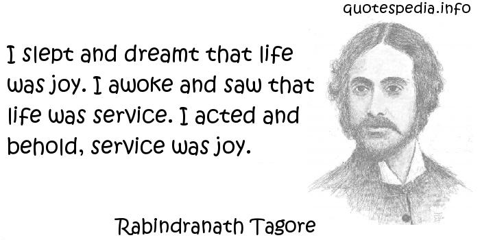 “I slept and dreamt that life was joy. I awoke and saw that life was service. I acted and behold, service was joy.” – Rabindranath Tagore, philosopher, author, songwriter, painter, educator, composer, Nobel laureate (1861-1941)