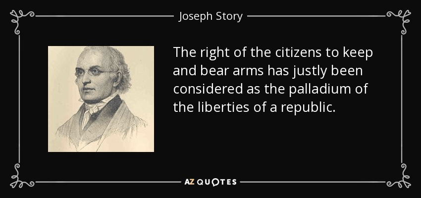 “The right of the citizens to keep and bear arms has justly been considered, as the palladium of the liberties of a republic; since it offers a strong moral check against the usurpation and arbitrary power of rulers; and will generally, even if these are successful in the first instance, enable the people to resist and triumph over them.” – Joseph Story