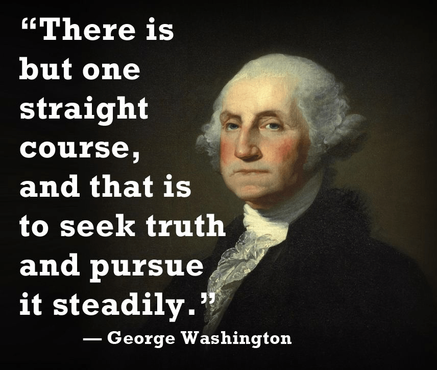 “There is but one straight course, and that is to seek truth and pursue it steadily.” – George Washington (1795)