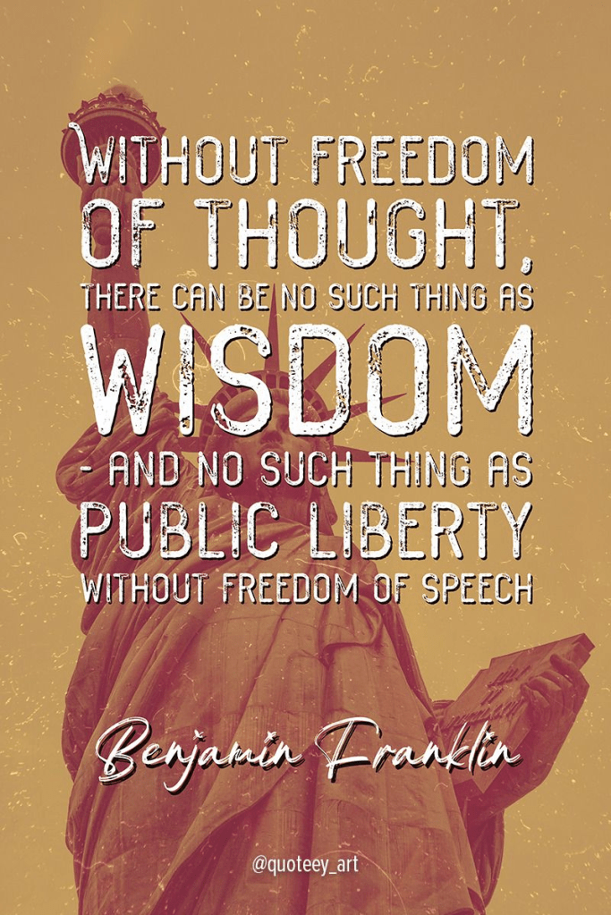 “Without Freedom of Thought there can be no such thing as Wisdom; and no such thing as Public Liberty, without Freedom of Speech.” – Benjamin Franklin (1722)