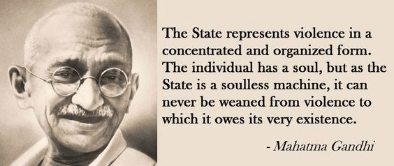 “The state represents violence in a concentrated and organized form. The individual has a soul, but as the state is a soulless machine, it can never be weaned from violence to which it owes its very existence.” – Mahatma Mohandas K. Gandhi (1869-1948)