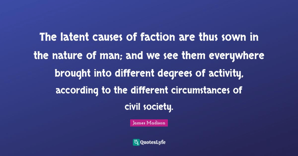 “The latent causes of faction are thus sown in the nature of man.” – James Madison (1787)