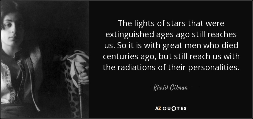 “The lights of stars that were extinguished ages ago still reach us. So it is with great men who died centuries ago, but still reach us with the radiations of their personalities.” – Kahlil Gibran, poet and artist (6 Jan 1883-1931)
