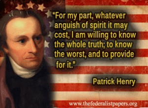 “For my part, whatever anguish of spirit it might cost, I am willing to know the whole truth; to know the worst, and to provide for it.” – Patrick Henry (1775)