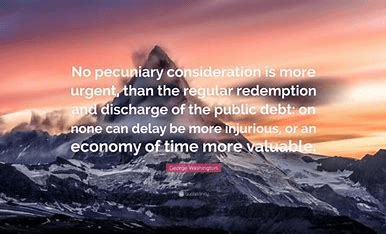 “No pecuniary consideration is more urgent, than the regular redemption and discharge of the public debt: on none can delay be more injurious, or an economy of time more valuable.” – George Washington (1793)