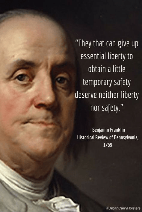 “They that can give up essential liberty to obtain a little temporary safety, deserve neither liberty nor safety.” – Benjamin Franklin (1795)