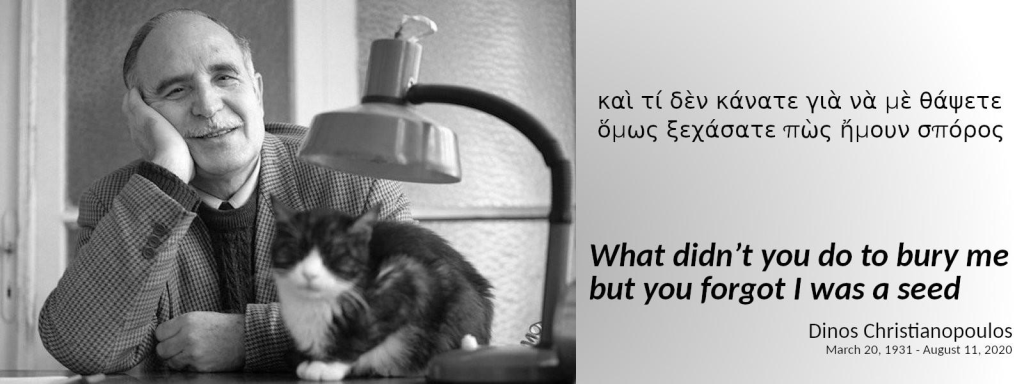 “They tried to bury us. They didn’t know we were seeds.” – Dinos Christianopoulos, poet (20 Mar 1931-2020)