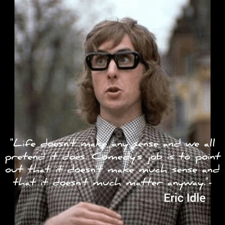 “At least one way of measuring the freedom of any society is the amount of comedy that is permitted, and clearly a healthy society permits more satirical comment than a repressive, so that if comedy is to function in some way as a safety release then it must obviously deal with these taboo areas. This is part of the responsibility we accord our licensed jesters, that nothing be excused the searching light of comedy. If anything can survive the probe of humour it is clearly of value, and conversely all groups who claim immunity from laughter are claiming special privileges which should not be granted.” – Eric Idle, comedian, actor, and author (b. 29 Mar 1943)