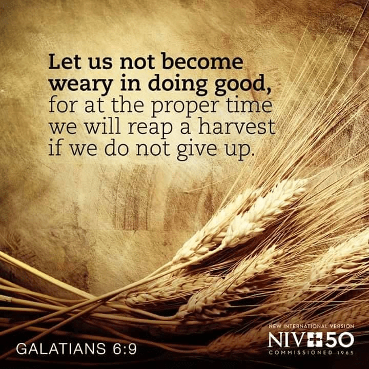 “We must not get tired of doing good, for we will reap at the proper time if we don’t give up.” – Galatians 6:9