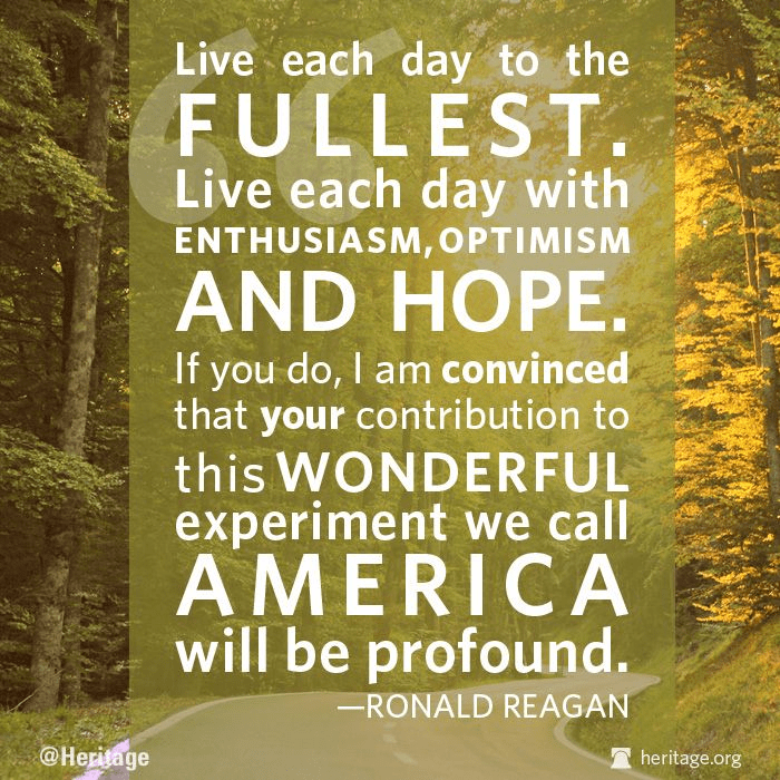 “Live each day to the fullest. Live each day with enthusiasm, optimism and hope. If you do, I am convinced that your contribution to this wonderful experiment we call America will be profound.” – Ronald Reagan