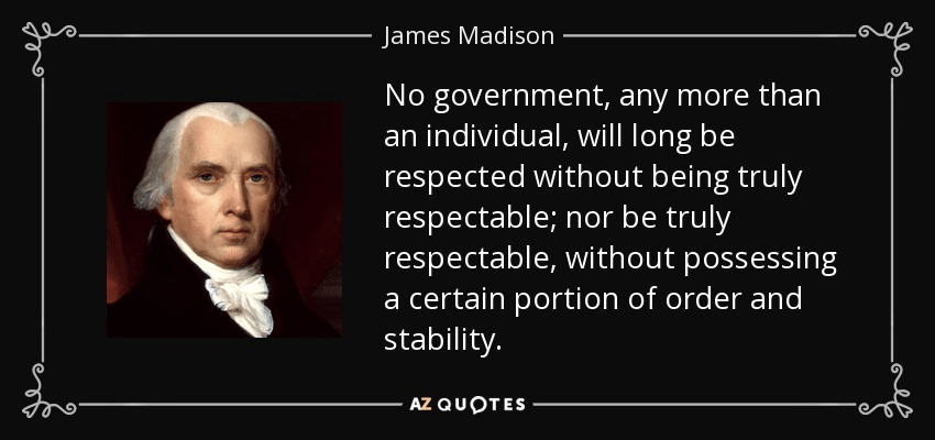 “No government, any more than an individual, will long be respected without being truly respectable.” – James Madison (1788)