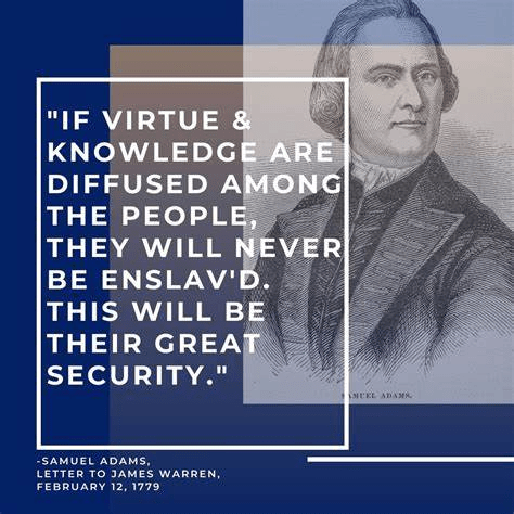 “If Virtue & Knowledge are diffused among the People, they will never be enslav’d. This will be their great Security.” – Samuel Adams (1779)