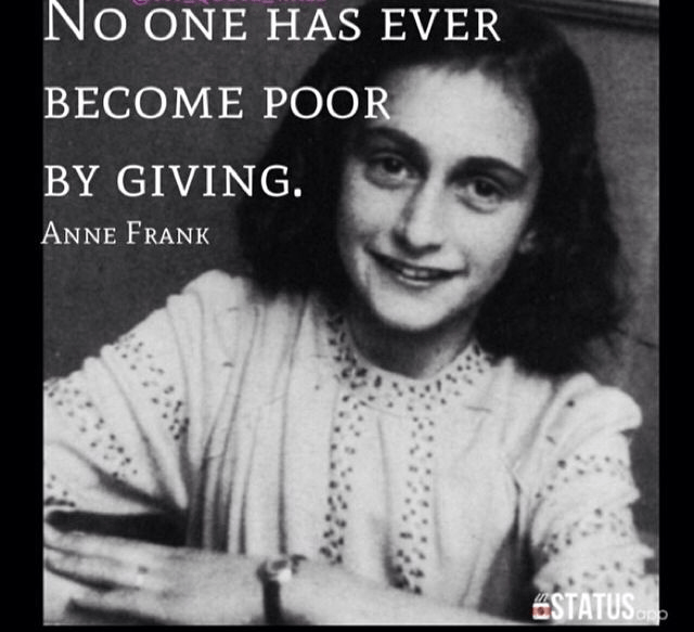 “No one has ever become poor by giving.” -Anne Frank, Holocaust diarist (12 Jun 1929-1945)