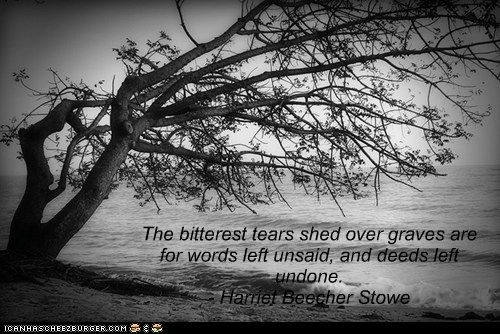 “The bitterest tears shed over graves are for words left unsaid and deeds left undone.” – Harriet Beecher Stowe, abolitionist and novelist (14 Jun 1811-1896)