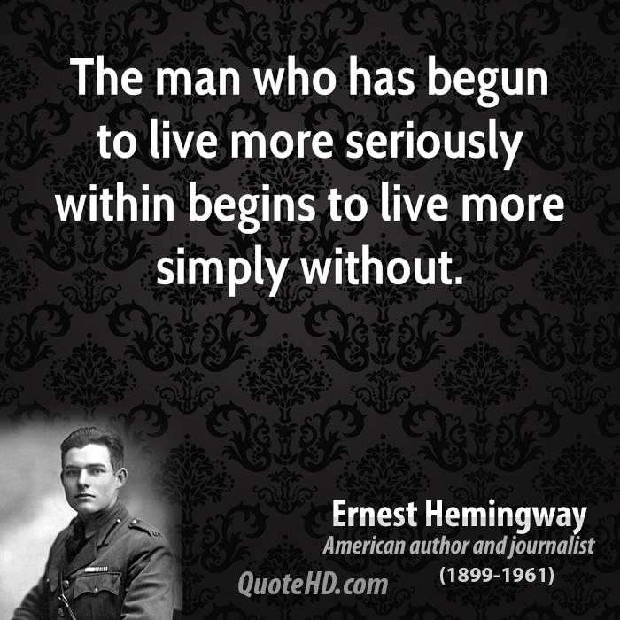“The man who has begun to live more seriously within begins to live more simply without.” – Ernest Hemingway, author, journalist, Nobel laureate (21 Jul 1899-1961)