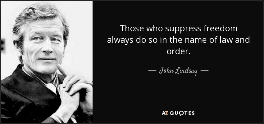 “Those who suppress freedom always do so in the name of law and order.” – John V. Lindsay (1921-2000)