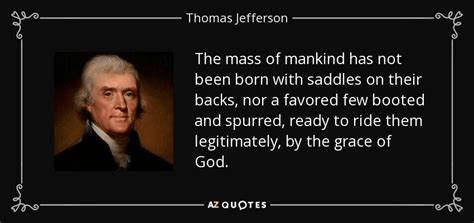 “The general spread of the light of science has already laid open to every view the palpable truth, that the mass of mankind has not been born with saddles on their backs, nor a favored few booted and spurred, ready to ride legitimately, by the grace of God.” – Thomas Jefferson (1826)
