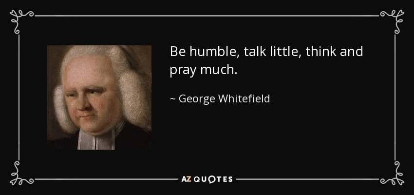 “Be humble, talk little, think and pray much.” – George Whitefield