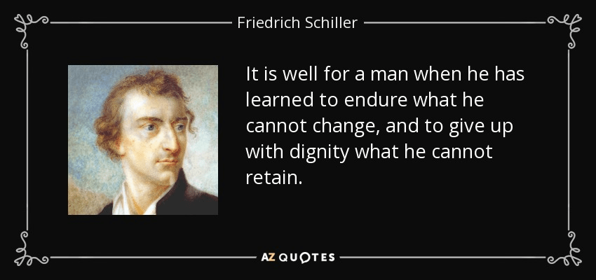 “It is well for a man when he has learned to endure what he cannot change, and to give up with dignity what he cannot retain.” – Friedrich Schiller