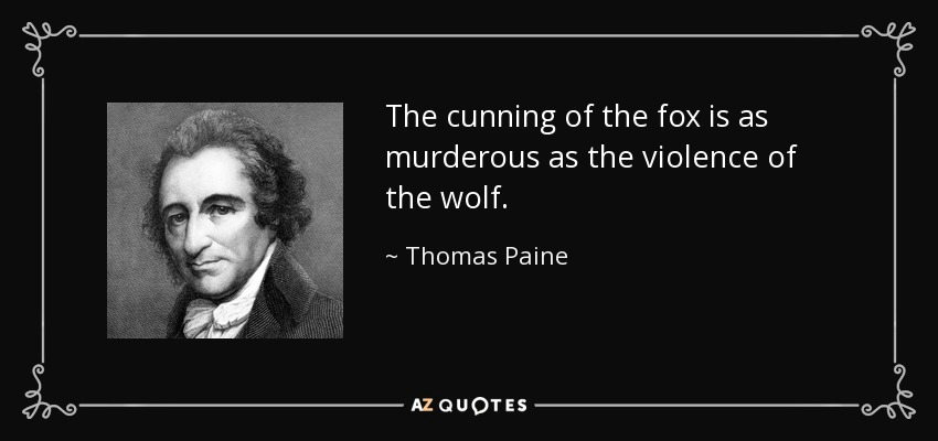 “It is the madness of folly, to expect mercy from those who have refused to do justice; and even mercy, where conquest is the object, is only a trick of war; the cunning of the fox is as murderous as the violence of the wolf.” – Thomas Paine, The American Crisis, No. 1, 1776