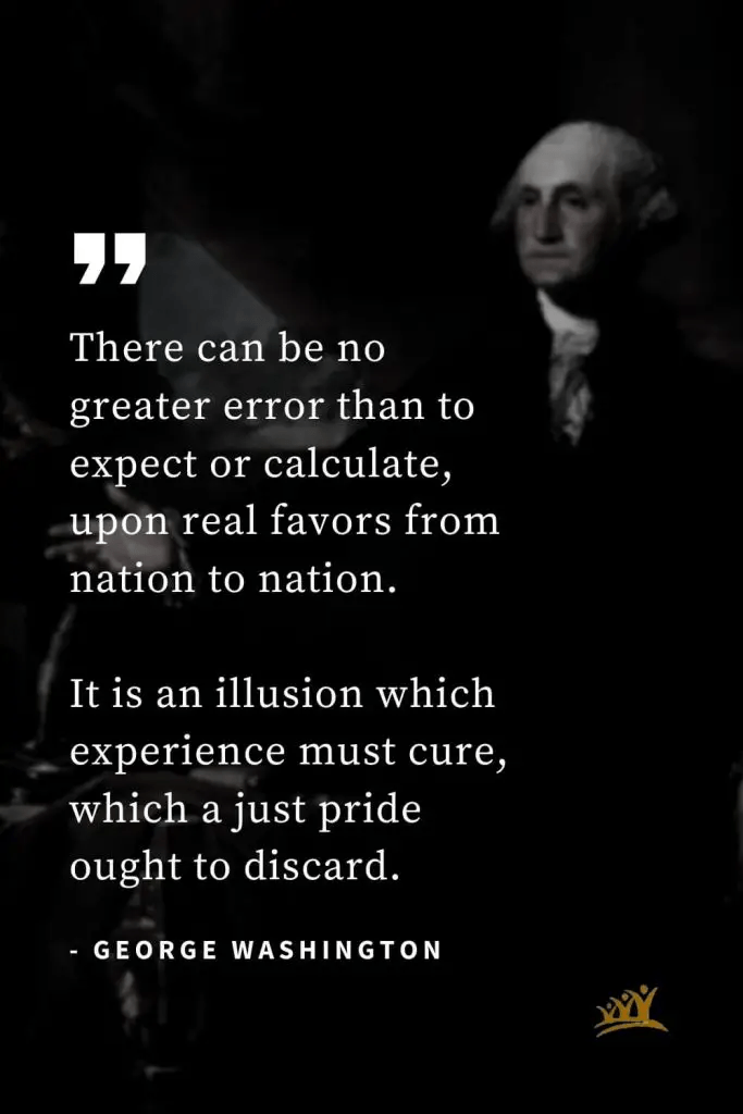 “There can be no greater error than to expect, or calculate upon real favours from Nation to Nation. ‘Tis an illusion which experience must cure, which a just pride ought to discard.“ – George Washington (1796)