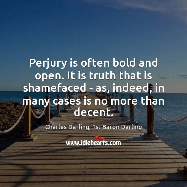 “Perjury is often bold and open. It is truth that is shamefaced – as, indeed, in many cases is no more than decent.” – Charles Darling, 1st Baron Darling