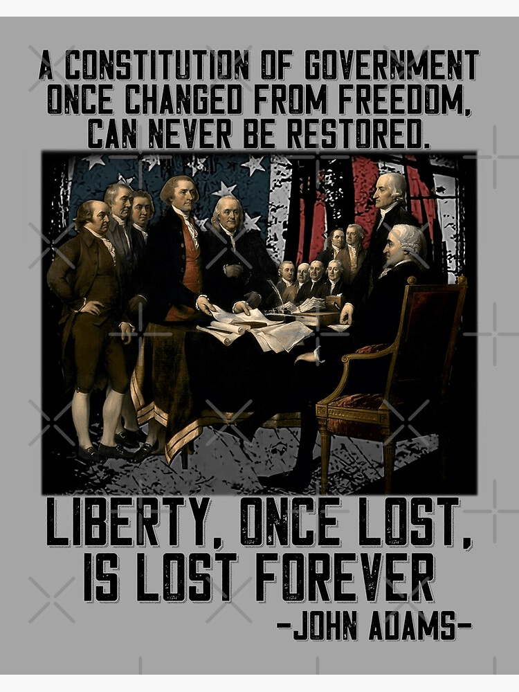 “A Constitution of Government once changed from Freedom, can never be restored. Liberty, once lost, is lost forever.” – John Adams (1775)