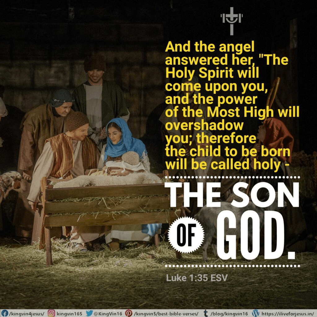 “And the angel answered her, “The Holy Spirit will come upon you, and the power of the Most High will overshadow you; therefore the child to be born will be called holy—the Son of God.” – Luke 1:35