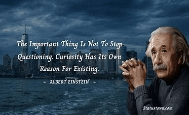 “The important thing is not to stop questioning. Curiosity has its own reason for existing. One cannot help but be in awe when he contemplates the mysteries of eternity, of life, of the marvelous structure of reality. It is enough if one tries merely to comprehend a little of this mystery every day. Never lose a holy curiosity.” – Albert Einstein